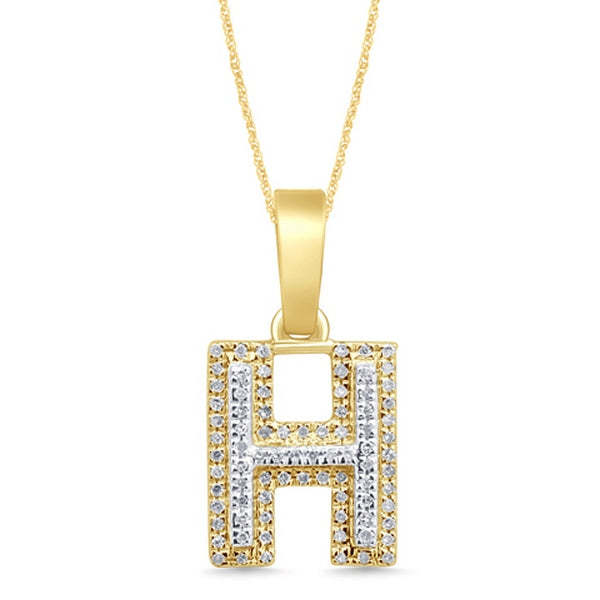 The bold and beautiful Alphabet Unisex Pendant "H" from Hollywood Collection stands out in 10K Yellow Gold and 0.14 carats of diamonds.