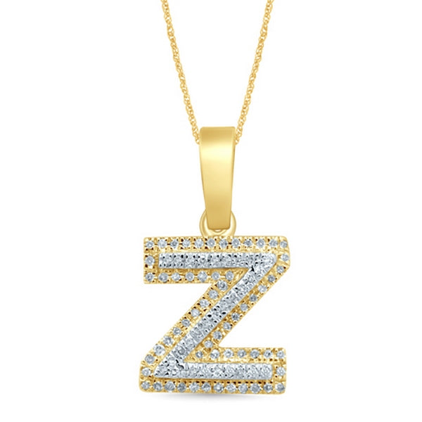 The bold and beautiful Alphabet Unisex Pendant "Z" from Hollywood Collection stands out in 10K Yellow Gold and 0.15 carats of diamonds.