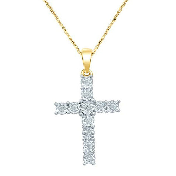 Religious Unisex Pendant Chris-2 with 10K yellow gold and studded with 0.185CTW diamonds. Classic Cross created beautifully in a minimalist design.