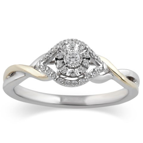 Women's Ring Esther blends 10K white and yellow gold in a vintage-inspired halo, adorned with 0.16 carats of sparkling diamonds. A romantic symbol of unity and grace, it’s designed to celebrate love, connection, and the beauty of your journey.