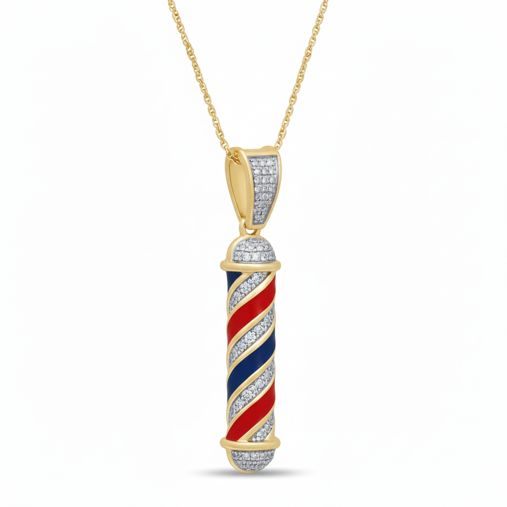 The Men's Pendant Landon pairs refined barber pole design with 10K yellow gold, featuring 0.19 carats of diamonds for a subtle yet stylish statement.