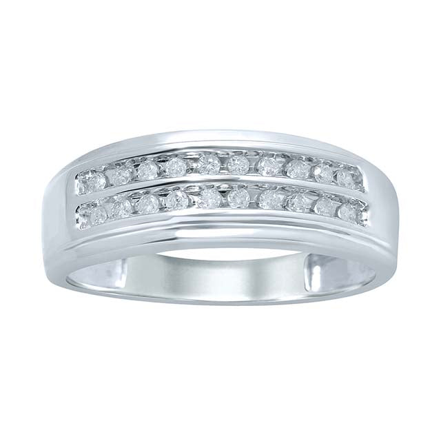 The Men's Ring Jacob offers sleek sophistication in 10K white gold, featuring 0.25 carats total weight of diamonds and Rhodium plating for a clean, confident finish.