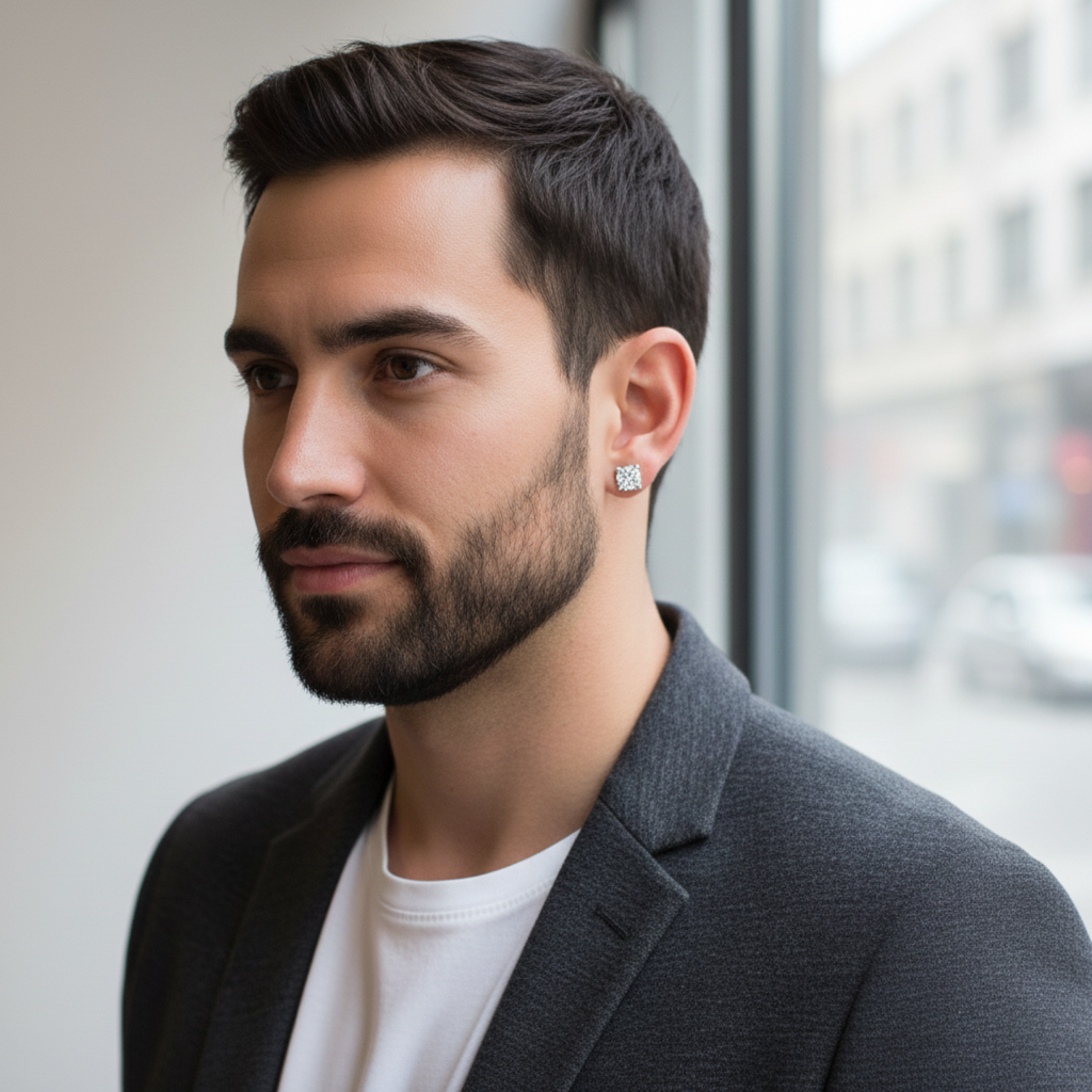 The Men's Earrings Andrew offer simple elegance in 10K white gold, set with 0.26 carats of diamonds for a clean, refined look that speaks authentically.