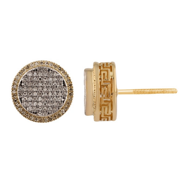 Women's Earrings Catherine are designed for women who appreciate refined sophistication with a vintage twist. Crafted in radiant 10K yellow gold, these earrings feature a striking circular arrangement of dark diamonds totaling 0.26 carats, enriched by an intricate Greek border.