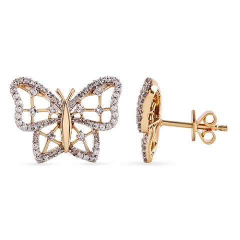 Women's Earrings Teagan feature a delicate butterfly design in 10K yellow gold and adorned with 0.37 carats of sparkling diamonds.