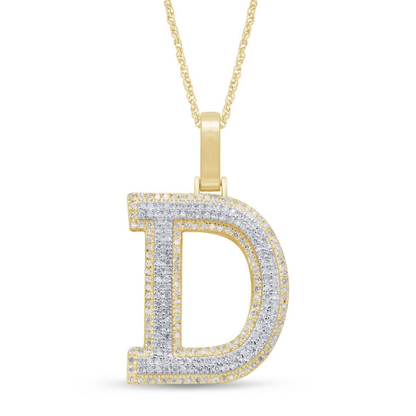 The bold and beautiful Alphabet Unisex Pendant "D" from Hollywood Collection stands out in 10K Yellow Gold and 0.43carats of diamonds.