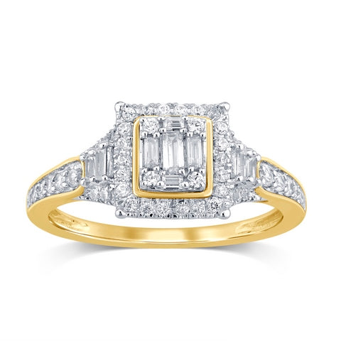 Women's Ring Ellie, crafted in lustrous 10K yellow gold. Featuring a 0.50 carat total weight of meticulously set diamonds arranged in a halo design.