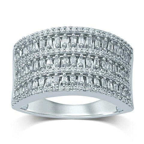 Women's Ring Lucille stuns with a three-layer design, combining baguette and round-cut white diamonds for a striking display of texture and brilliance. With 0.52 carats set in polished 10K white gold, it’s a radiant piece that blends classic elegance with contemporary flair.