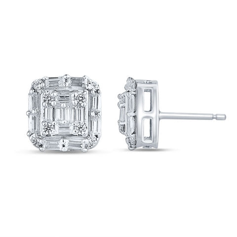 Women's Earrings Veronica are crafted for the woman who embraces modern elegance with confidence. Made from luminous 10K white gold, these geometric beauties feature 44 precisely set baguette and round diamonds, totaling 0.61 carats, arranged to create a captivating play of light and texture.