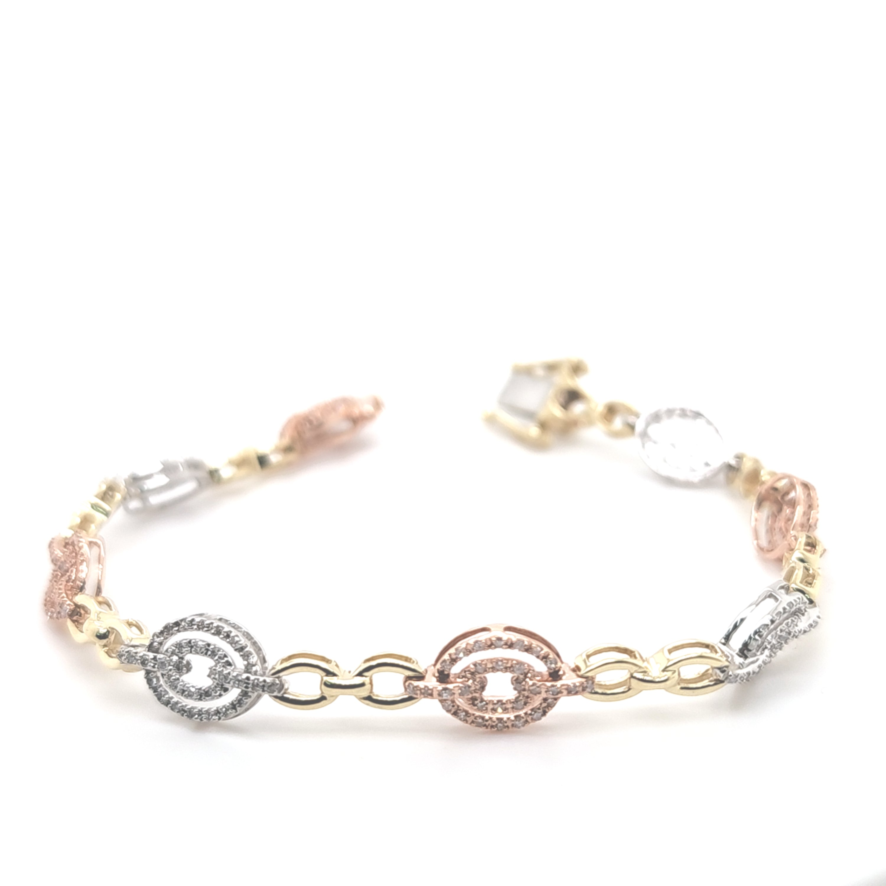 The Women's link bracelet Ava is crafted from 10K tri-color gold and features 0.65 carats of diamonds expertly crafted in a sleek design.