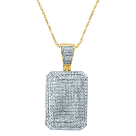 Men's Pendant Leo is a bold signature piece, crafted in a studded dog tag design from 10K yellow gold. Meticulously set with 317 round brilliant diamonds, it features a total diamond weight of 0.76 carats.