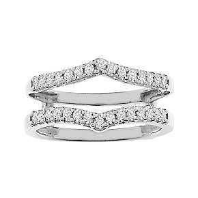 Women's Ring Guard Angela features a mirrored wishbone design, adorned with 0.23 carats of diamonds set in polished 14K white gold for a sleek and minimalistic look.