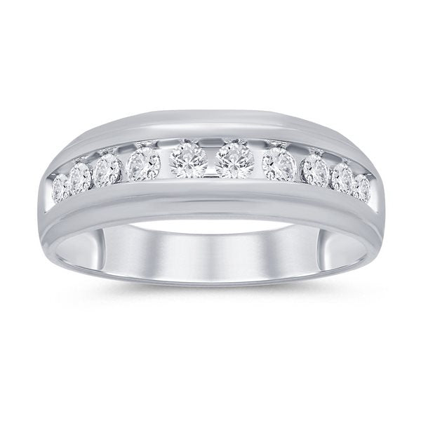 The Men's Ring Aaron is crafted in 14K white gold, featuring a sleek, structured design set with 0.50 carats of diamonds. Its clean lines and understated brilliance speaks to those who value authenticity over excess.