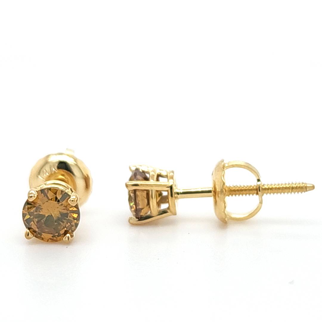 Women's Earrings Gabriella feature two striking dark yellow diamonds totaling 0.68 carats, set in rich 14K yellow gold. These vibrant stud earrings offer a distinctive take on classic elegance, blending bold color with classic luxury for a look that stands out effortlessly.