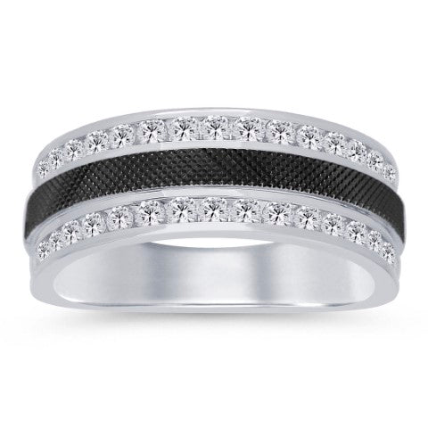 The Men's Ring Jameson shines brilliantly in 14K white gold in bold contrast with black enamel, featuring a luxurious 1.00 carats of diamonds.