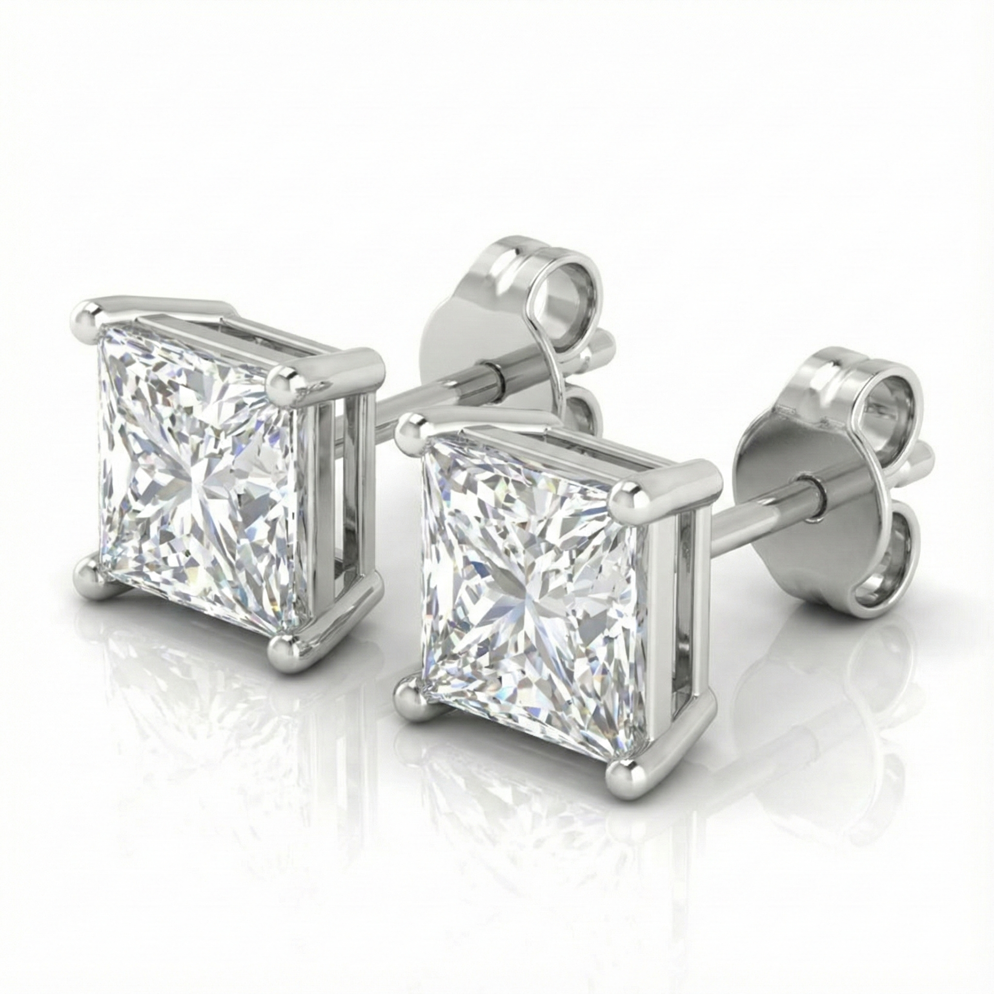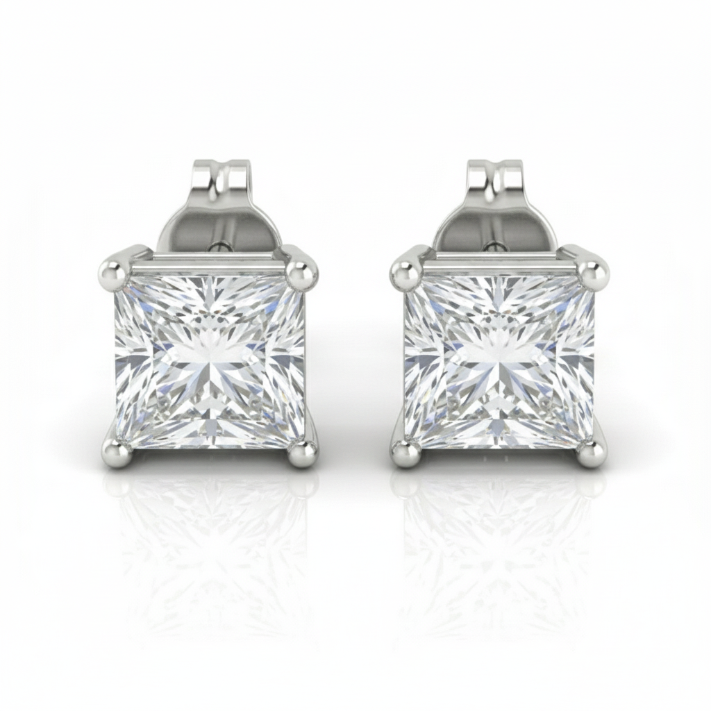 Women's Earrings Regina are a statement of refined brilliance and modern sophistication. Crafted in polished 14K white gold, each earring features a striking princess-cut lab-grown diamond, IGI certified for exceptional quality and ethical sourcing.